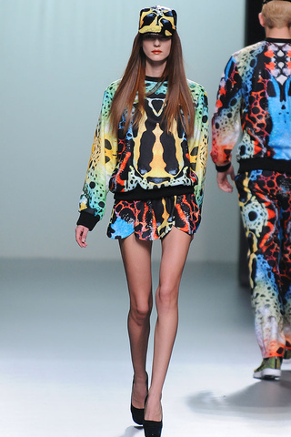 María Escoté, con cantidad de colores llamativos y llenos de vitalidad, con modelos con volúmenes, transparencias y prendas muy cortas evocando el movimiento del agua la colección se llama poción, y la pasarela a sido de lo mas autentica y muy colorista, los vestidos que han lucido las modelo han sido muy femeninos, una pasarela con personalidad propia y muy rotundos que va desde los monos hasta las viseras a juego con las prendas, perfecta para una mujer cosmopolita y urbanchic. sin lugar a dudas me fascina.